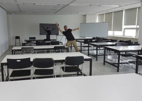 Alle Austauschstudierenden können in der ersten Woche beliebig viele englischsprachige Kurse besuchen, bevor sie sich festlegen müssen. Hilfestellung gab es vom „Buddy“, also einem Hongik-Studierenden, der während des gesamten Semesters organisatorische Fragen beantworten und hilfreiche Tipps geben kann. Hier nutzten Jasmin und Christopher auch die Kontakte zu den Kommilitonen und Kommilitoninnen, die sie schon an der Merz Akademie kennengelernt hatten.