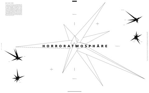 Nach wissenschaftlicher Abhandlung einer Theorie der Angsträume und deren umfangreicher Betrachtung in Bereichen der Physik, Psychologie und Philosophie wird diese in ihre einzelnen räumlichen Elemente zerlegt. Nach anschließender Analyse, Strukturierung und Isolation in neun definierte Bereiche ist eine allgemeingültige Definition des Horrors entstanden, die in neun Atmosphärenheften visualisiert wurde. Diese Sammlung enthält dreihundertzehn ermittelte Begriffe, von denen sich jeder Angstraum bedient und von denen er lebt.