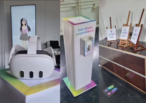 Beyond Boundaries is an immersive installation that combines physical and virtual space. Due to the 1:1 scaling to the real space, visitors experience intuitive and user-friendly navigation. Various experience modes offer VR beginners the opportunity to immerse themselves individually and gradually in the virtual world. The aim is to appeal to VR newcomers and create an immersive experience that makes it possible to experience art in a new way.