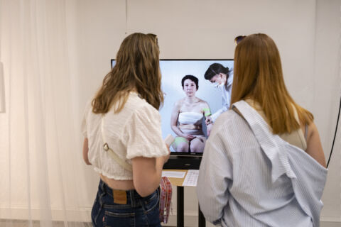 The multimedia exhibition Pain x Change confronts visitors with (bodily) pain and the attempt to communicate it. Since pain is inherently invisible and cannot be proven objectively, it often feels impossible to describe it in a way that is believable to others. Four stations show my attempts at different forms of pain expression with the objective to externalize it and shape it into a tangible form. For that I utilized practices common in BDSM and took inspiration from Marina Abramović’s performance art.