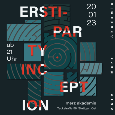 Die Erstsemesterparty des Wintersemesters 2024/25 findet am Freitag, 13. Dezember 2024 statt. Organisiert von Studierenden des 2. Semesters der Merz Akademie.