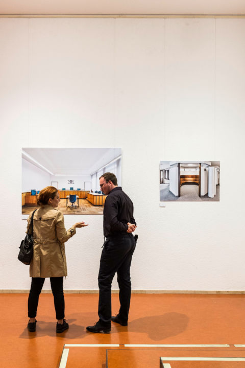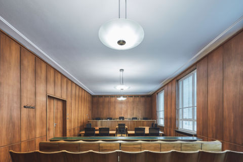 Die Fotoserie “Landgericht” führt durch den Gebäudekomplex aus den 20er und 70er Jahren und gewährt einen Blick hinter die Kulissen. Im Portrait der menschenleeren Flure und Räume werden nicht nur Bürokratie, Macht, Ordnung und Recht sichtbar. Die Fotografien bilden den Moment der Ruhe des Gebäudes vor Verhandlungsbeginn ab, werden zu Bühnenbildern und erzählen die Geschichten weiter.