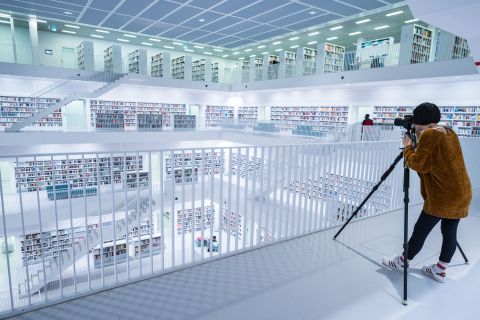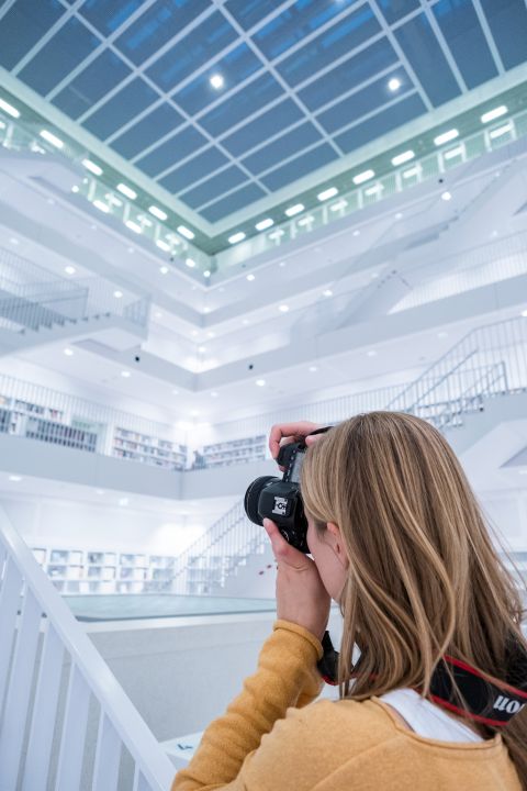 Der Werkstattkurses Fotografie 3 „Fototechnik“ auf Exkursion in der Stadtbibliothek Stuttgart: