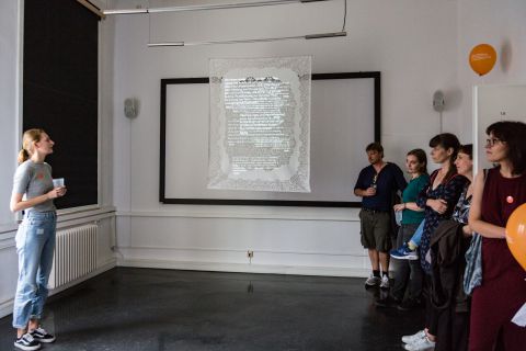 Im Gestaltungskurs Sprachräume haben Studierende Text- und Bildinformationen aus Onlinemedien in den analogen Raum gestellt und dort inszeniert.