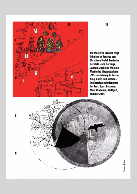 the Master is Present zeigt Arbeiten im Prozess von Frederike Gerhartz, Jana Hartnigk, Jasmin Singh, Melanie Martin und Christiana Teufel. Entstanden im Gestaltungskolloquium des Masterstudiengangs „Wissensbildung in Gestaltung, Kunst und Medien“ bei Prof. Joost Bottema.
