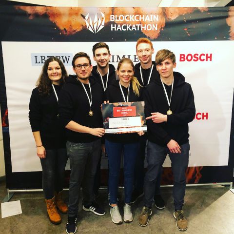 Das Team „mocence“ mit New Media-Absolvent Fabian Gligor gewann beim Blockchain Hackathon für ihr Projekt „mocence: incentivising new mobility“ in der Kategorie „Best Business Model.