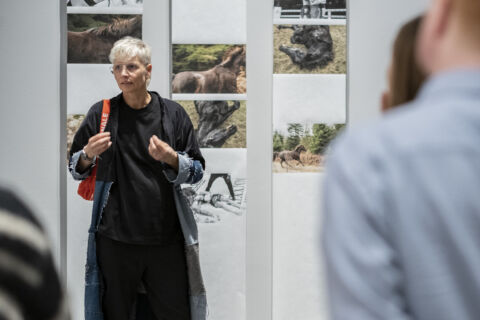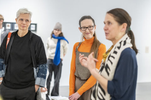 Die Ausstellung PLAYLIST in der Staatsgalerie Stuttgart war die Koopertation der Projektkurse von Professorin Anja Weber (links) und Ulrike Myrzik der ABK (rechts). In der Mitte Rektorin Dr. Barbara Eggert, die die Reihe "Better together - Praktiken und Ökonomien des gemeinsamen Tuns" kuratierte.