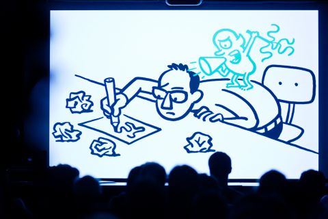 Eigentlich hätte Christoph Niemann nichts dagegen, bis zu seiner Pensionierung kleine Männchen mit Aktenkoffern zu zeichnen, die aktienkurvenförmige Leitern hochklettern. Er hat aber beschlossen, dass das in Zeiten von Internet, iPad und einer sich ständig umwälzenden Medienlandschaft kein guter Plan ist. Deshalb schreibt er jetzt Bücher für Kinder, animiert für Google, bloggt für die New York Times und erzählt in seinem Vortrag von den Schwierigkeiten und den Chancen, die diese so mit sich bringen.