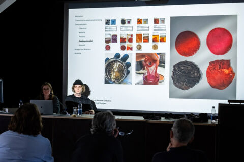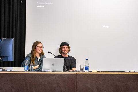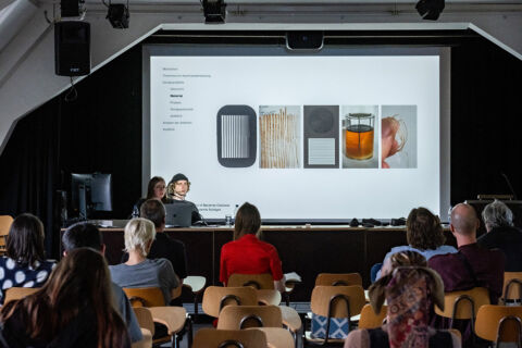 Caja Peters und Ben Herbig präsentierten anhand ihrer Abschlussarbeiten ihre Vorstellungen zu Nachhaltigkeit im Designstudium.