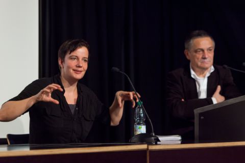 Die Theaterwissenschaftlerin Sibylle Peters gab einen Überblick über Strategien des künstlerischen Forschens im zeitgenössischen Theater und konzentrierte sich dabei auf theatrale Strategien der Versammlung und der Herstellung von Öffentlichkeit. Insbesondere der Umgang mit den Zuschauern, die Teilnahme des Publikums und das Unscharfwerden der Grenzen zwischen Produktions- und Rezeptionsstrategien war Gegenstand ihrer Ausführungen zum szenischen Forschen, das sich sowohl aufseiten der Theatermacher wie ihrer Rezipienten vollzieht.